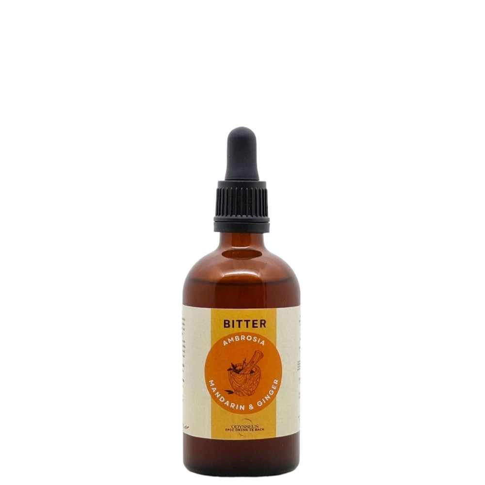 Bitter Ambrosia Mandarino e Zenzero, in bottiglia di vetro da 100 ml, è un prodotto italiano proveniente da Palermo, Sicilia, ideale per arricchire i tuoi cocktail con un tocco di agrumi e zenzero.