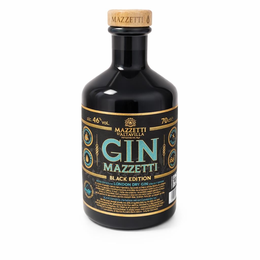 Il Gin Black Edition Mazzetti, in bottiglia di vetro da 0,7 litri, appartiene alla categoria dei gin premium, offrendo un’esperienza di alta qualità in un elegante contenitore.