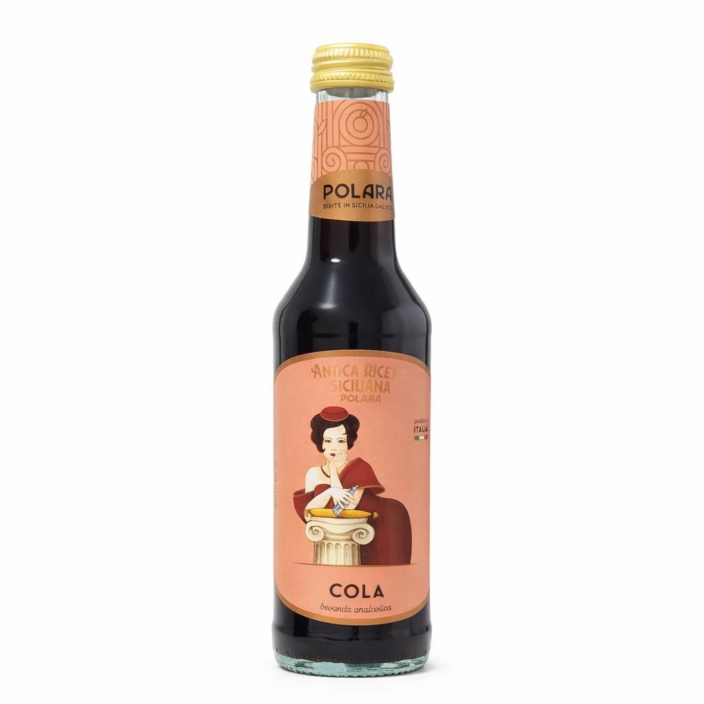 Polara Cola in bottiglia di vetro da 275 ml, proveniente dall’Italia, disponibile in confezione da 24 pezzi, ideale per chi cerca una bibita gassata tradizionale e di qualità.